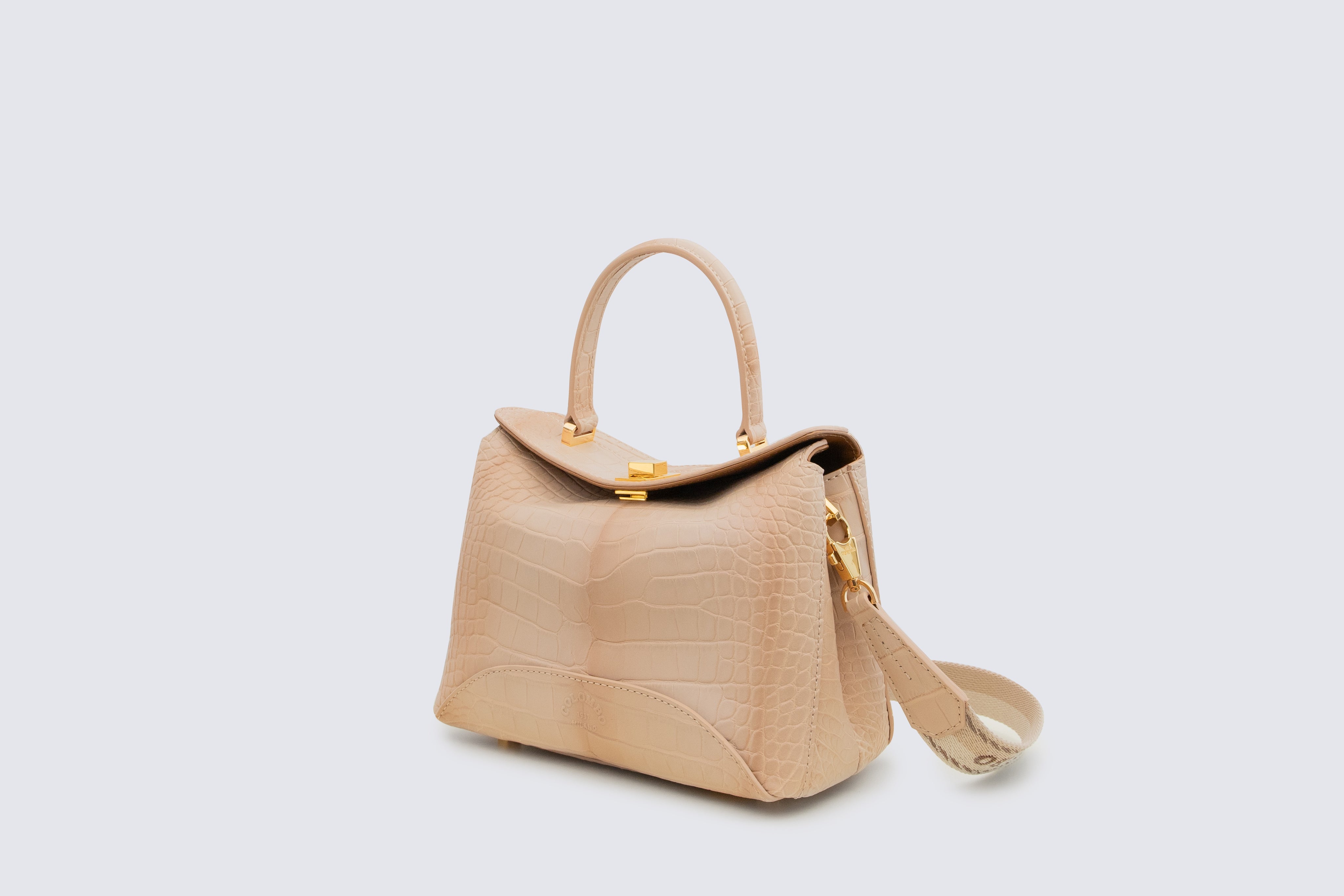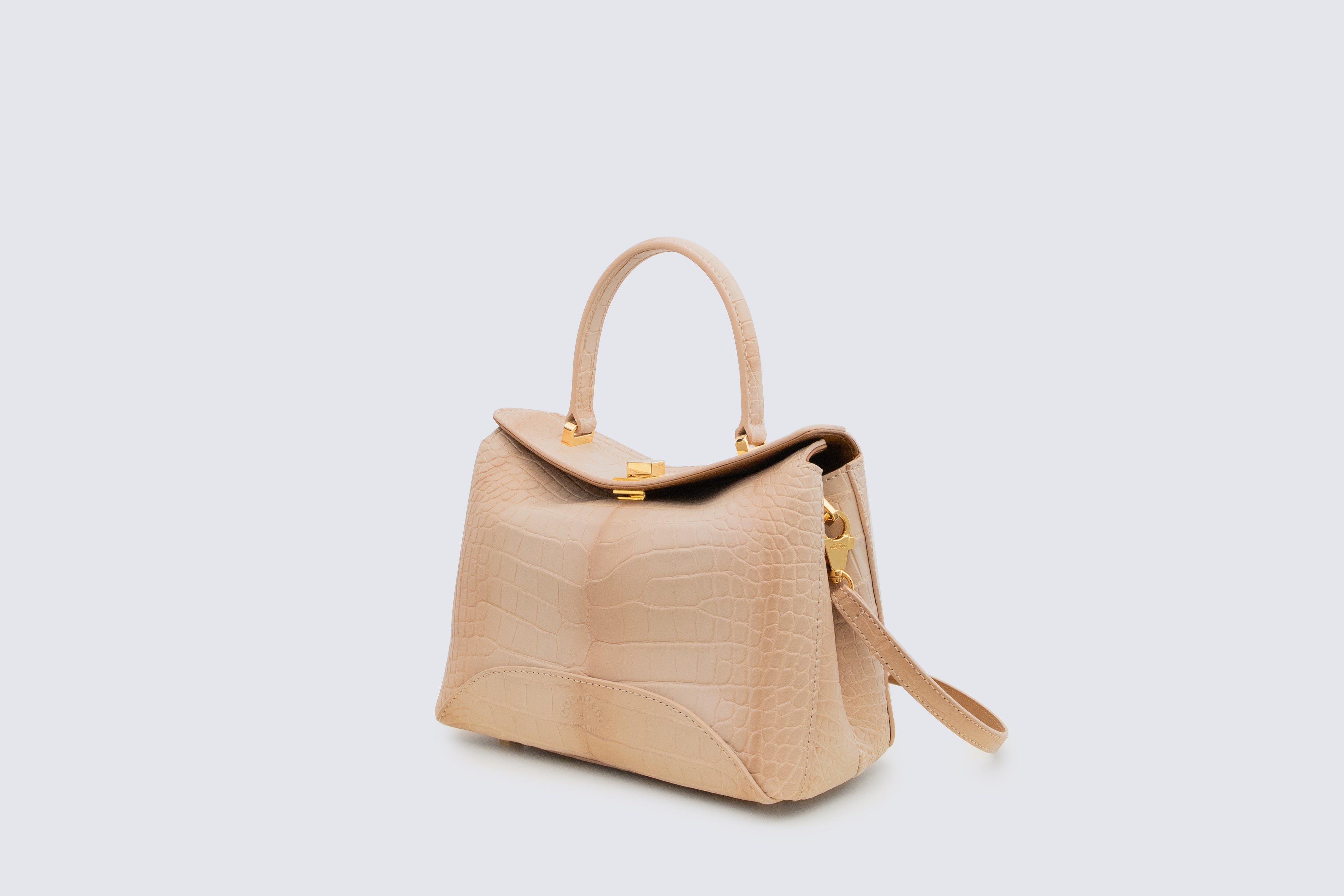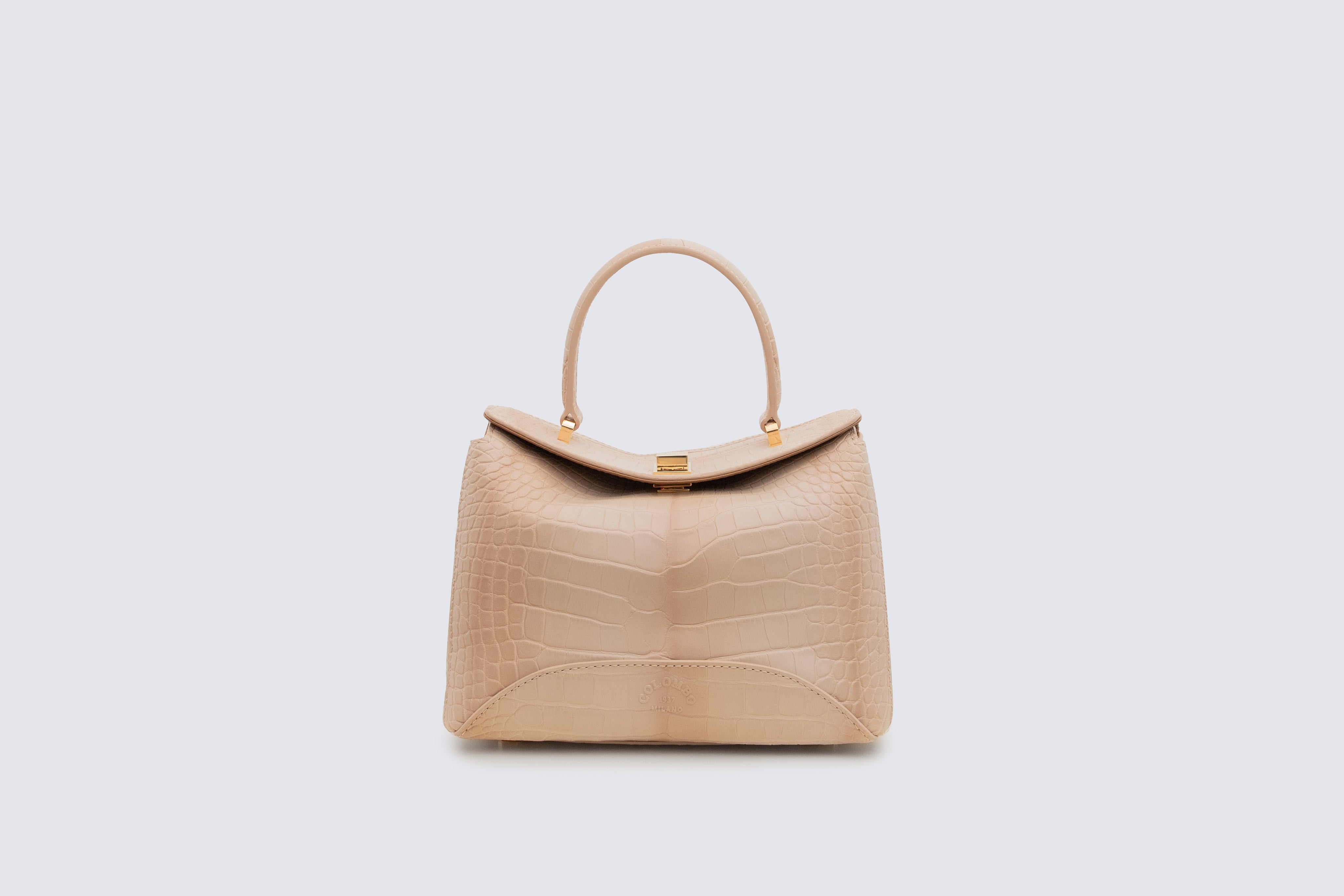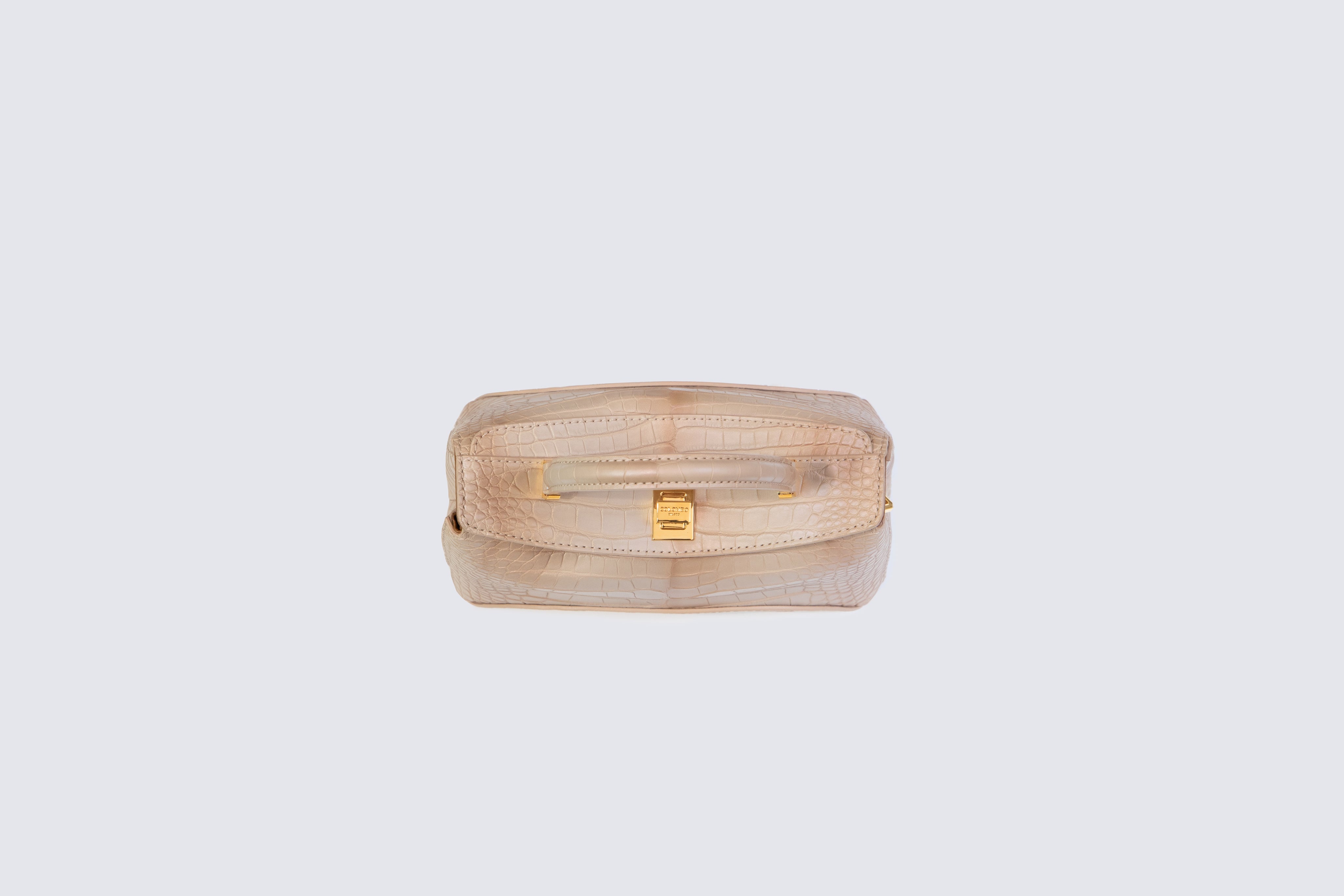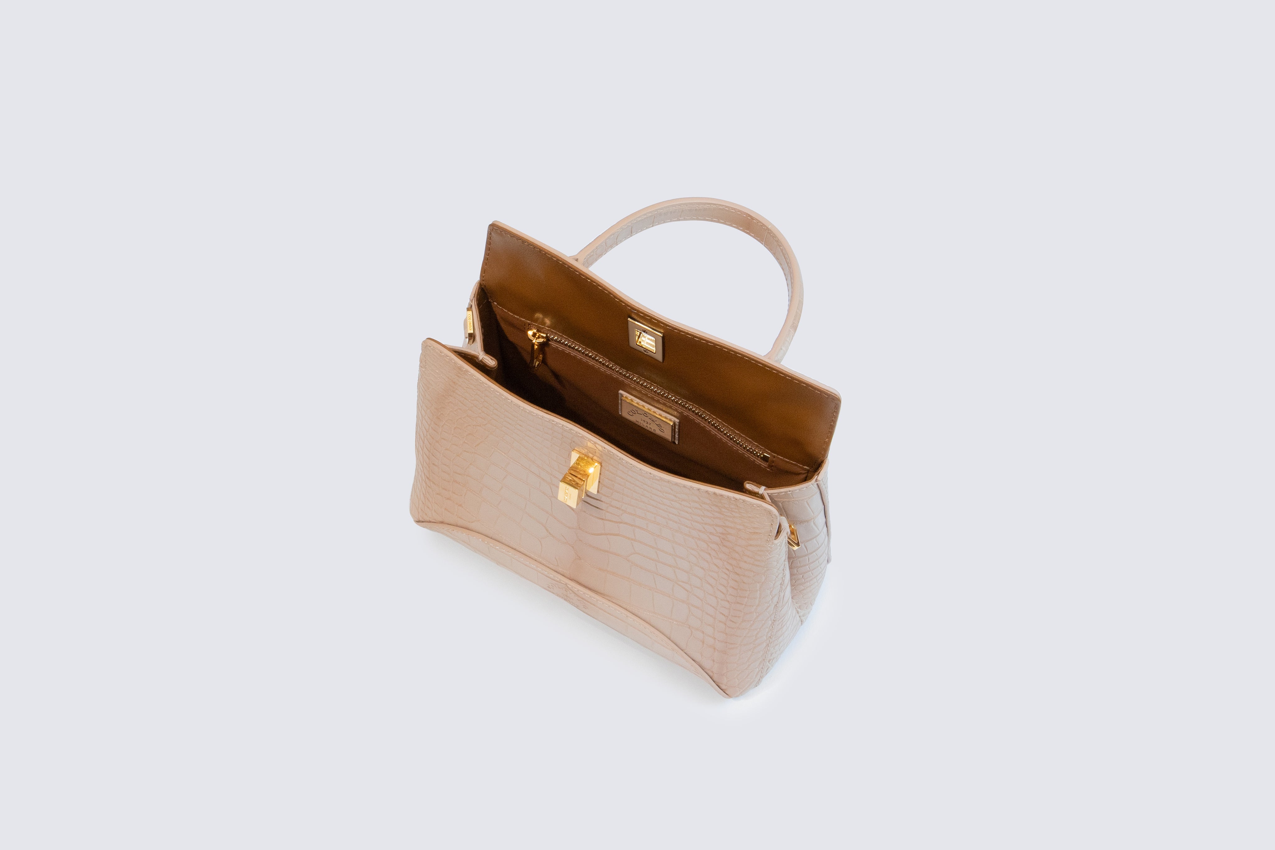 Venere si distingue per le sue forme morbide e armoniose, che uniscono eleganza e versatilità. Il suo design minimalista, impreziosito da una chiusura in metallo e da un manico singolo, la rende perfetta per ogni occasione, dall'uso quotidiano agli eventi più raffinati. Un accessorio senza tempo che completa senza sforzo qualsiasi look.