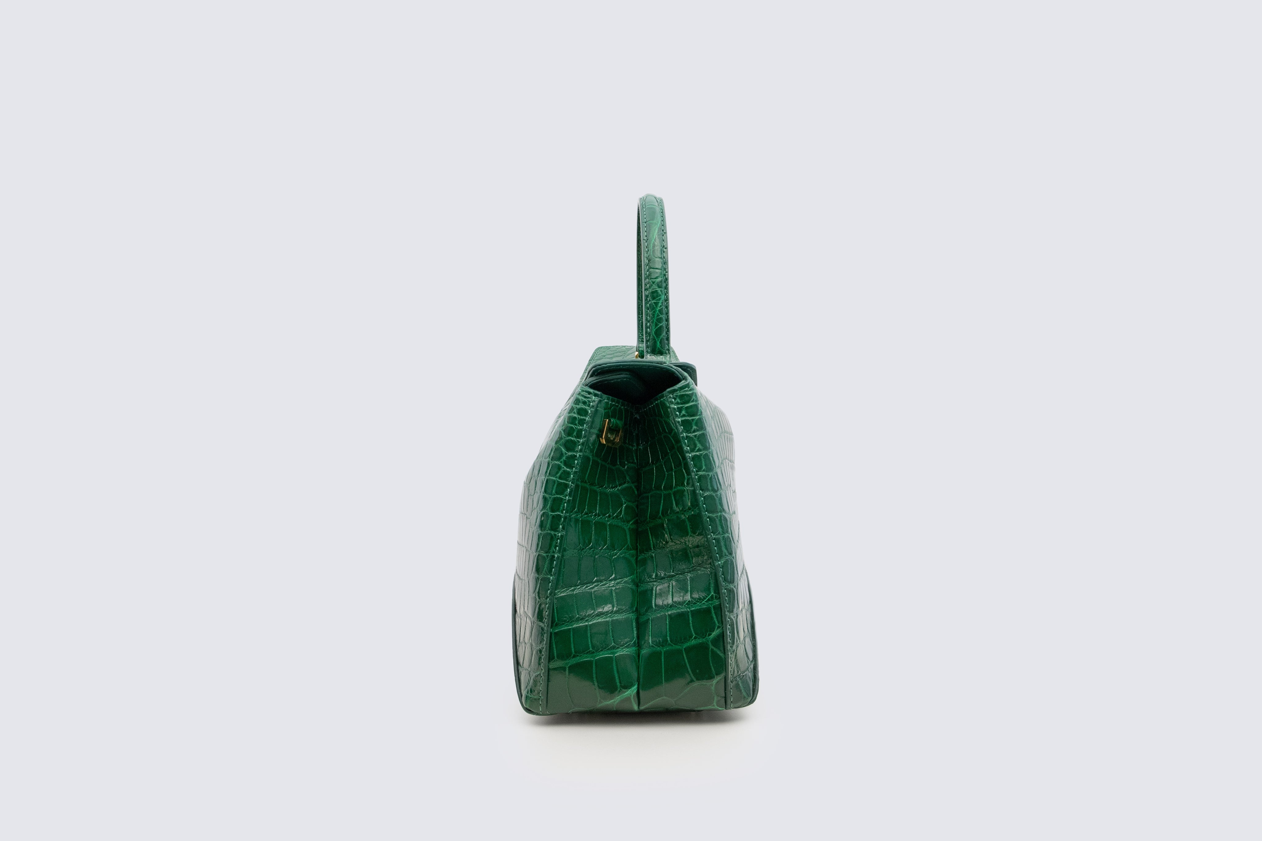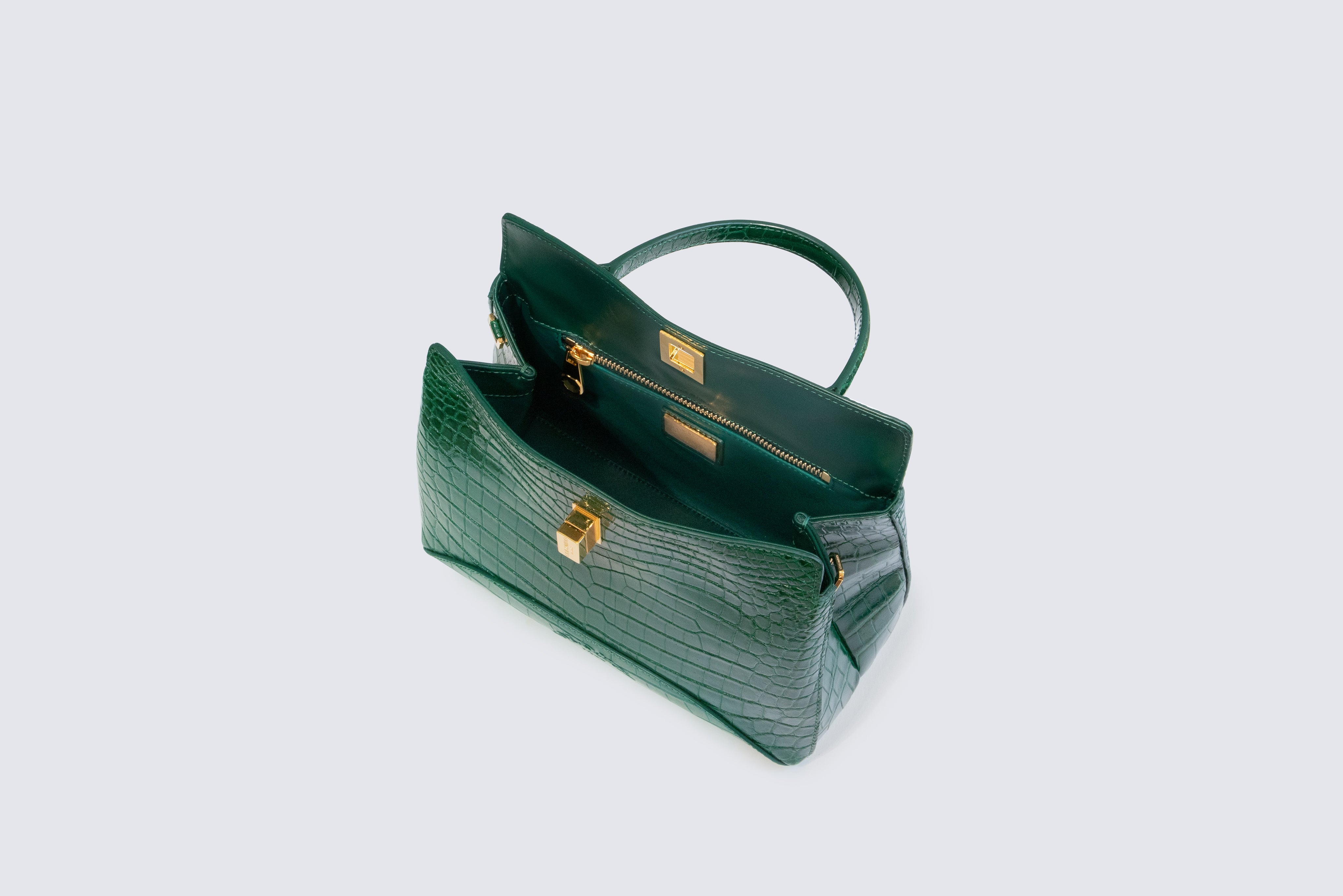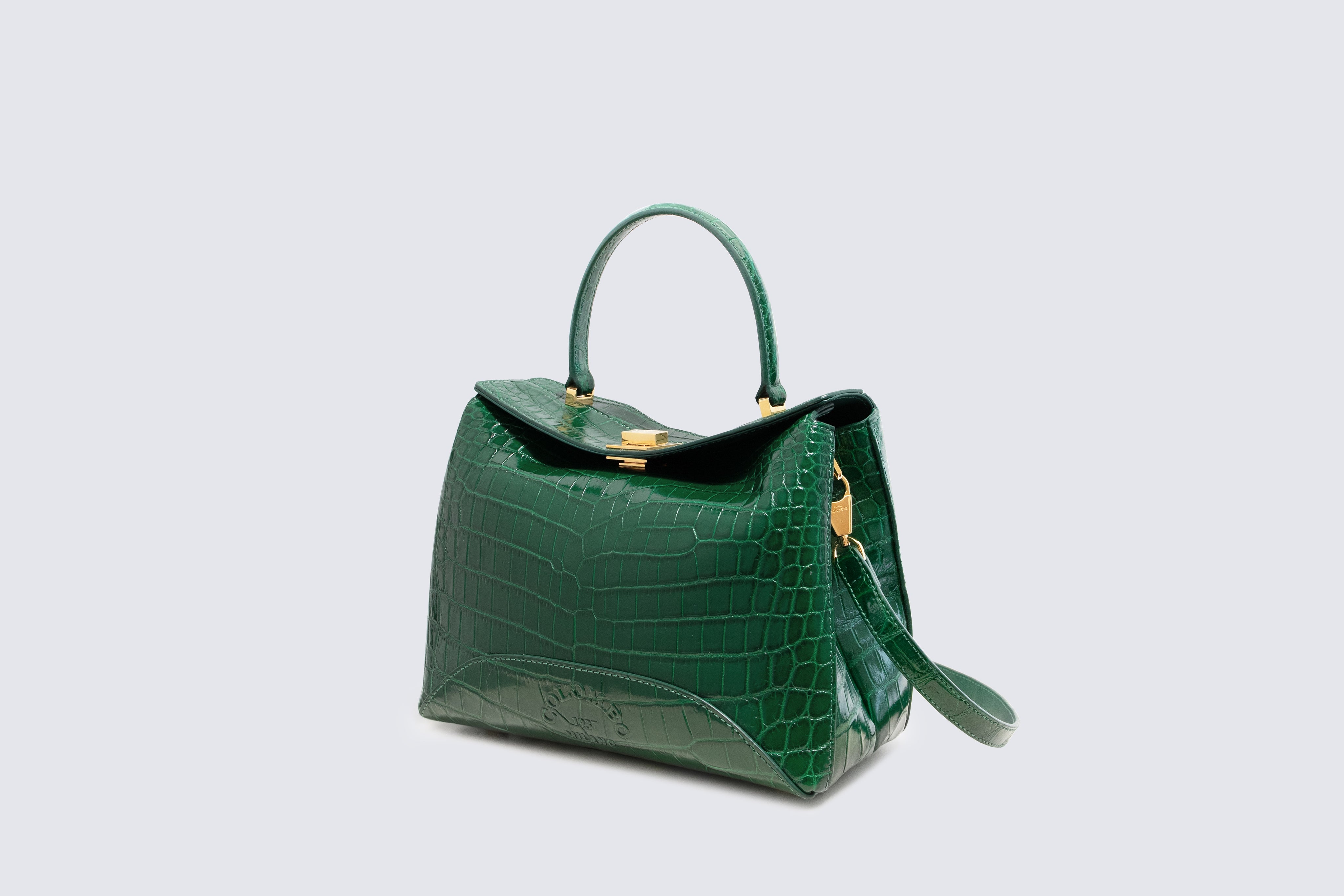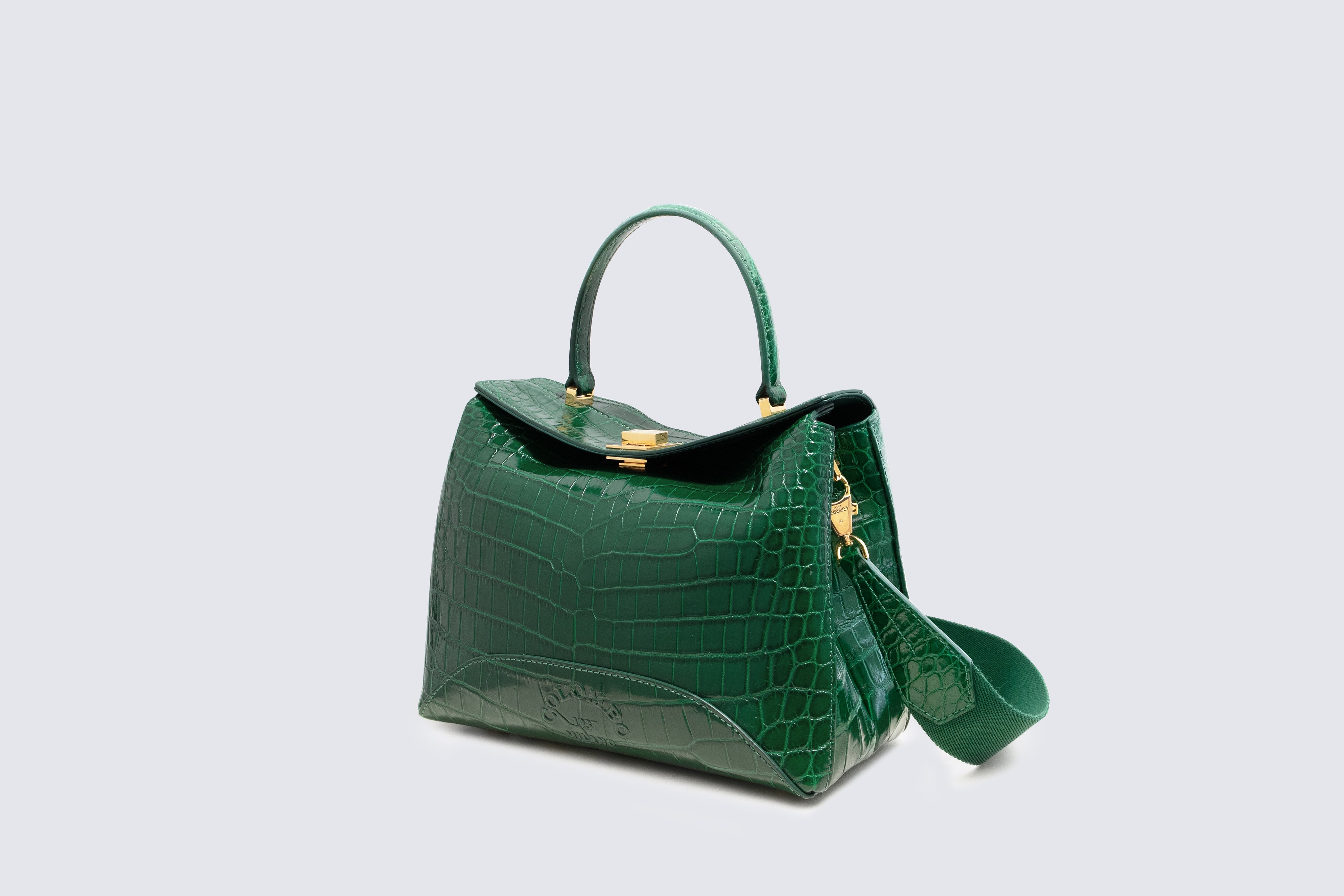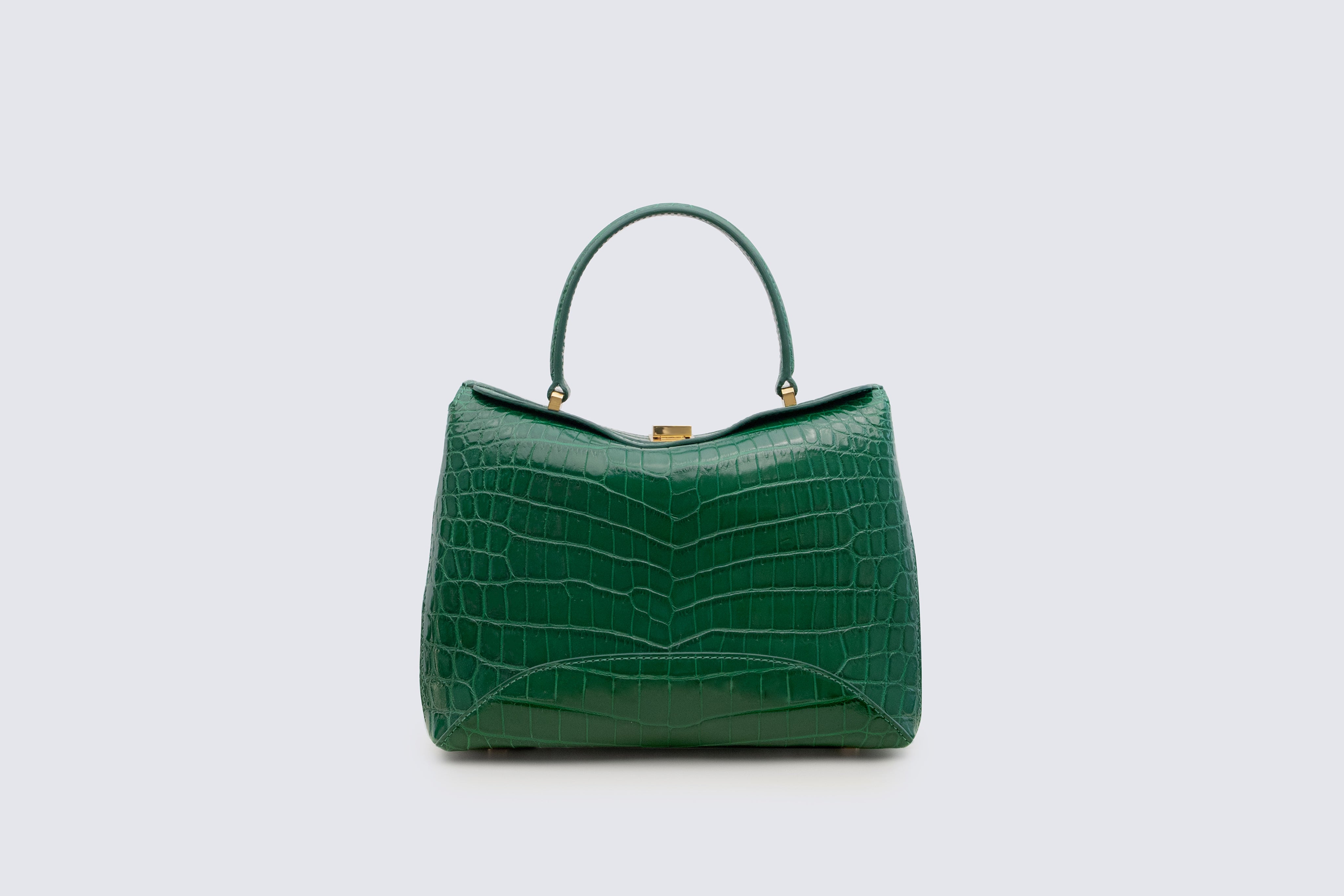 Venere si distingue per le sue forme morbide e armoniose, che uniscono eleganza e versatilità. Il suo design minimalista, impreziosito da una chiusura in metallo e da un manico singolo, la rende perfetta per ogni occasione, dall'uso quotidiano agli eventi più raffinati. Un accessorio senza tempo che completa senza sforzo qualsiasi look.
