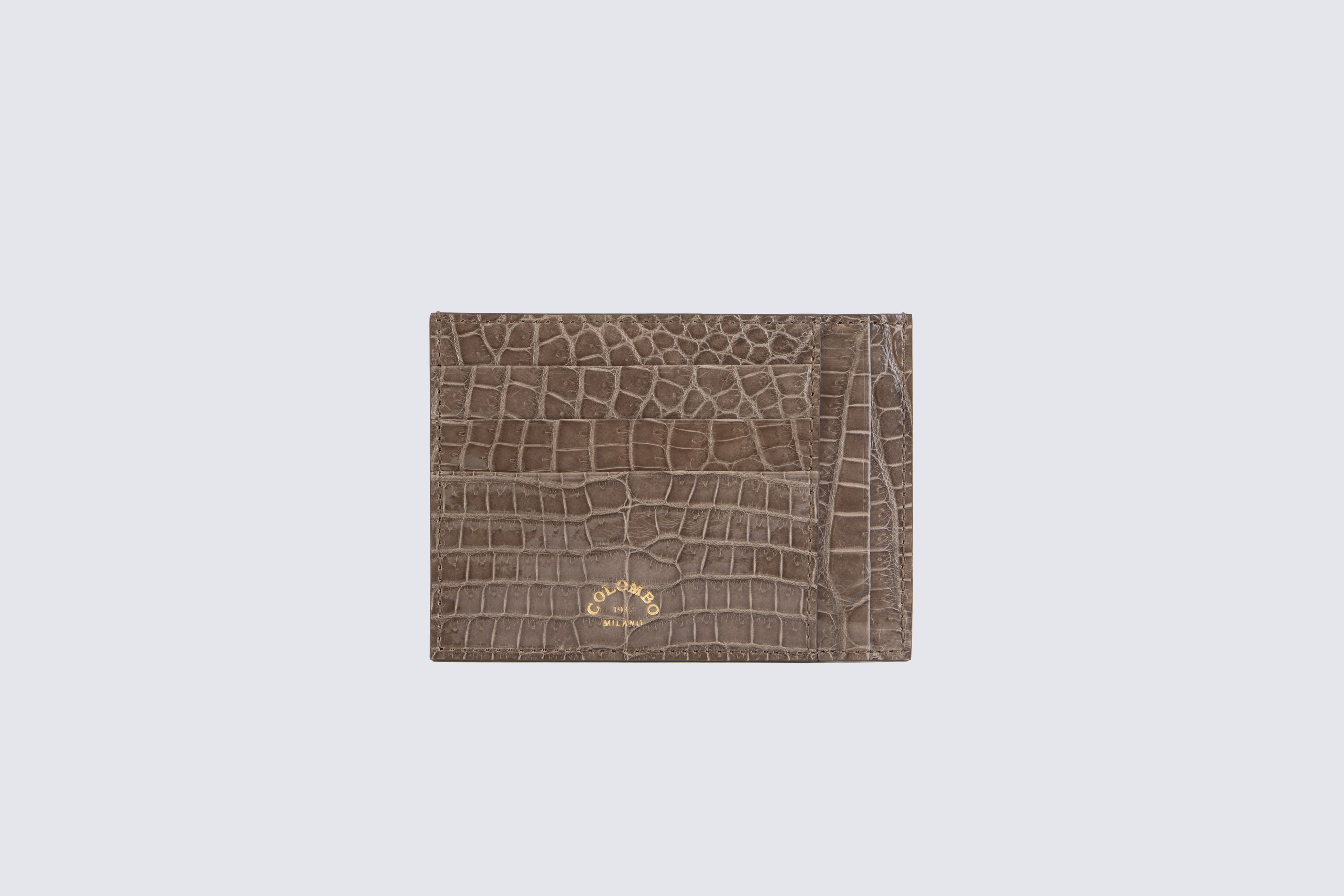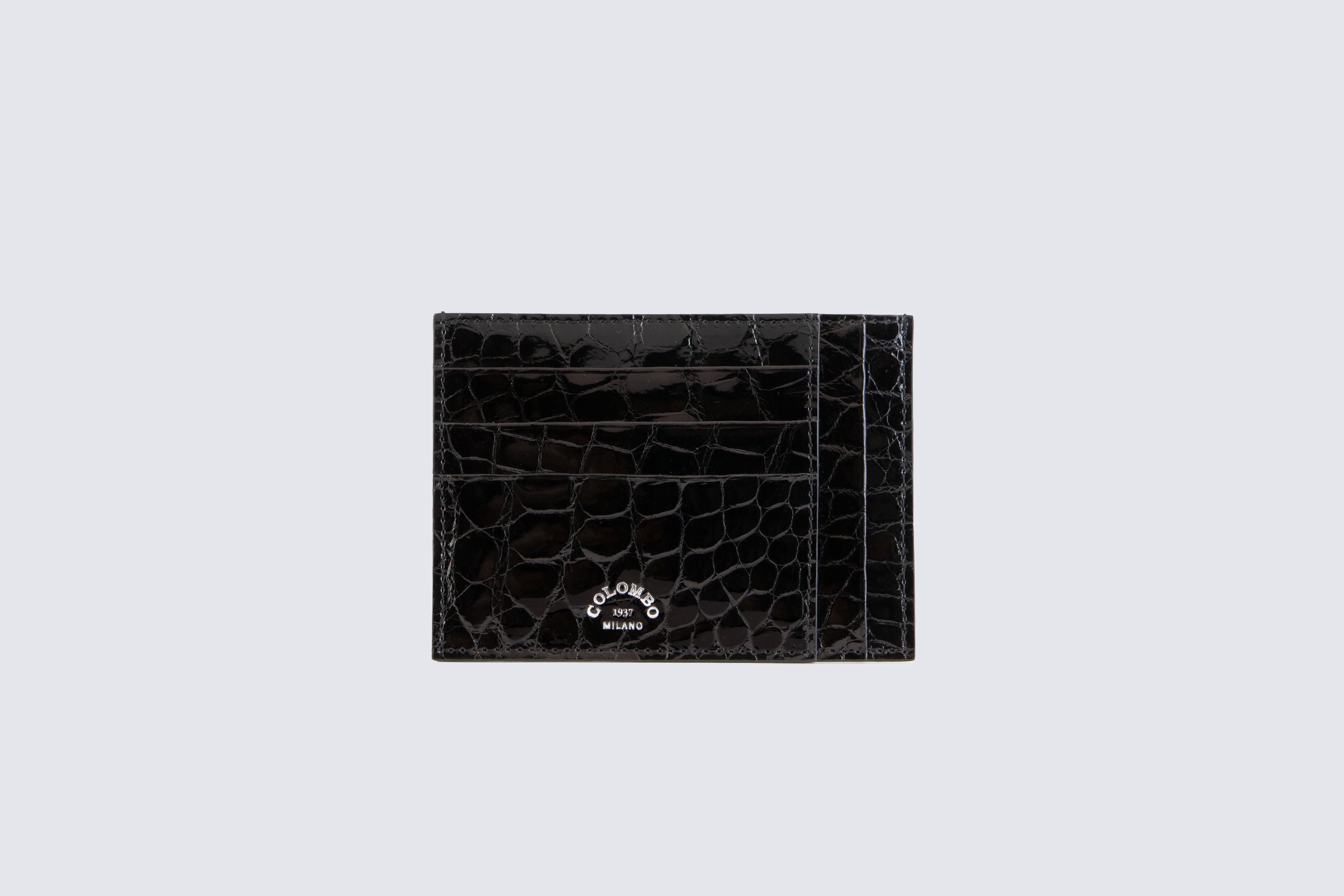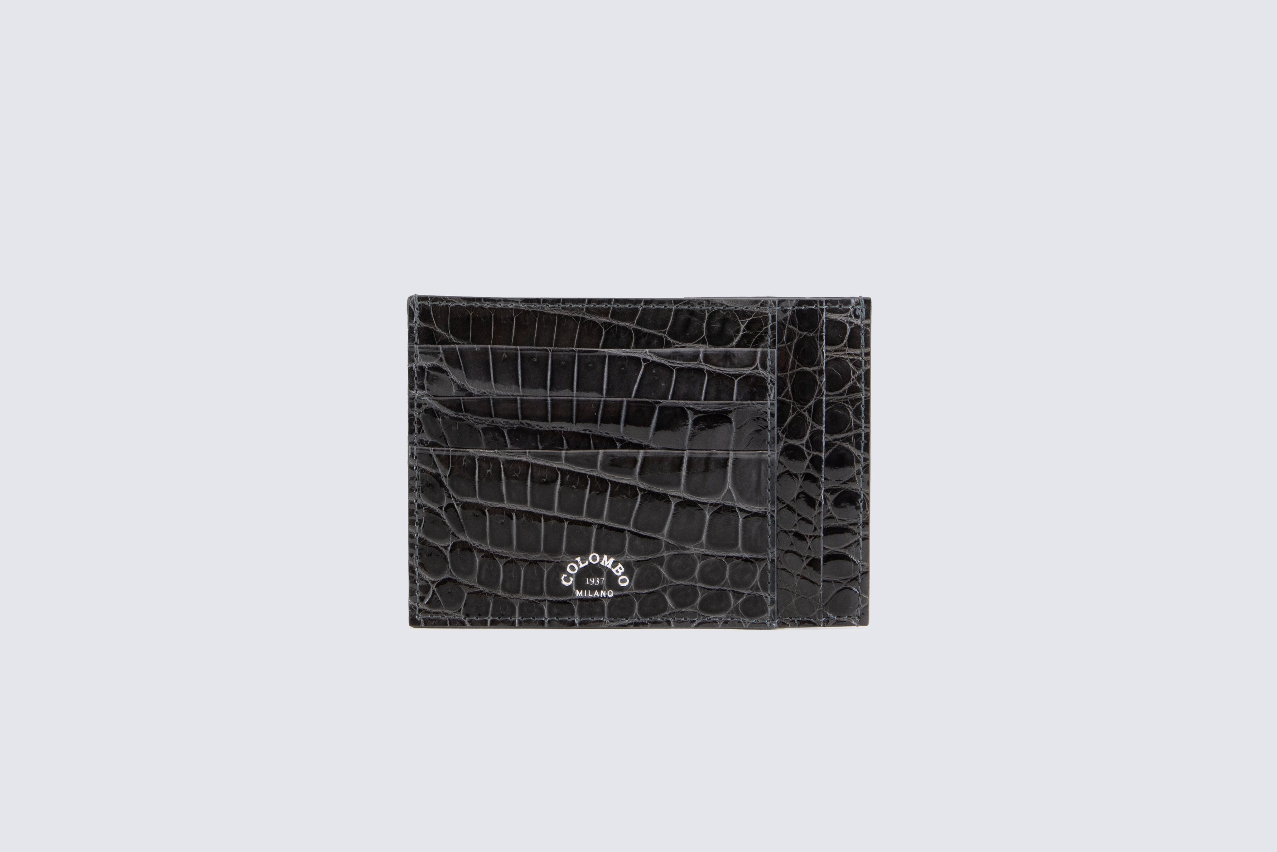 Crocodile leather card holder with ten compartments and a central pocket.