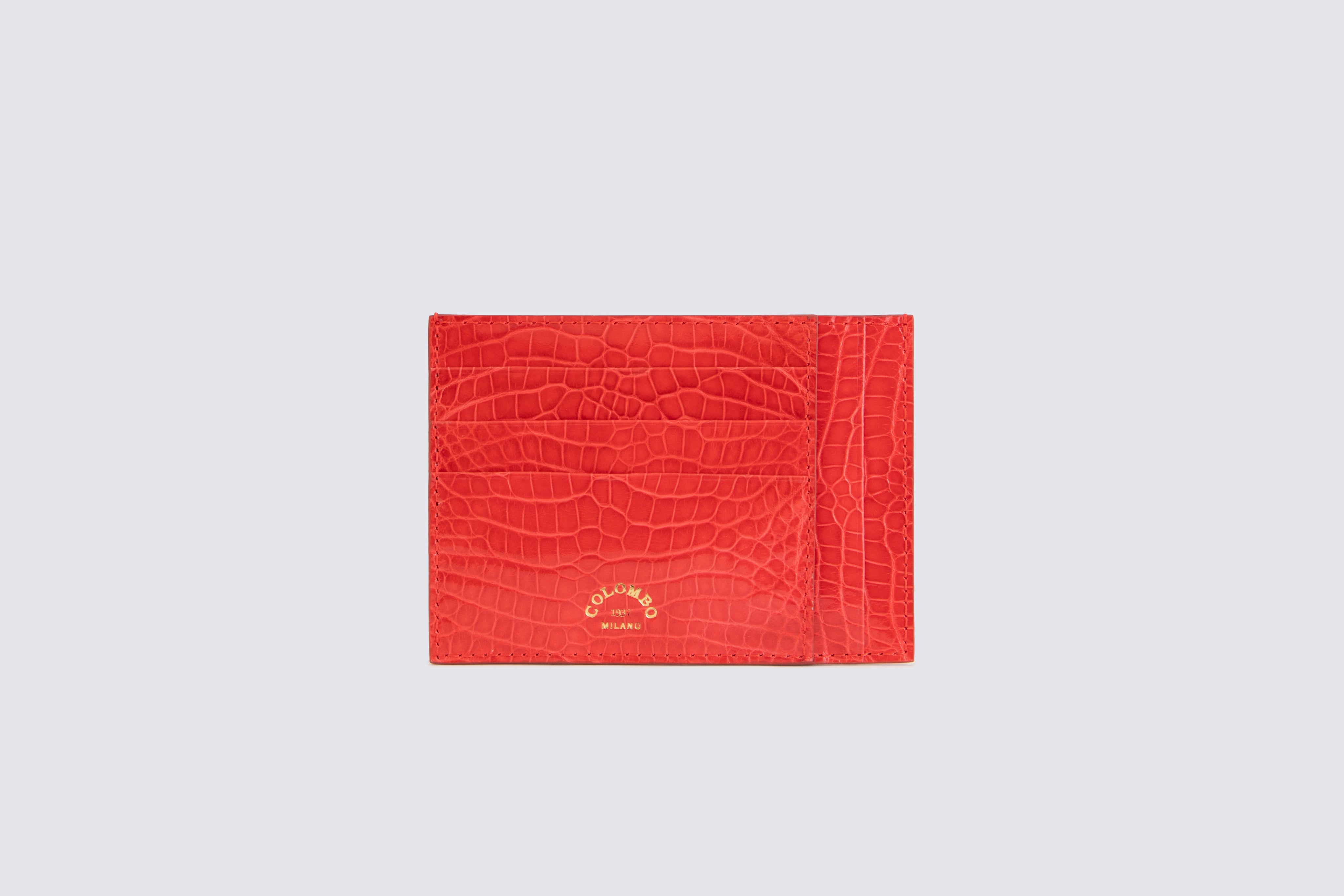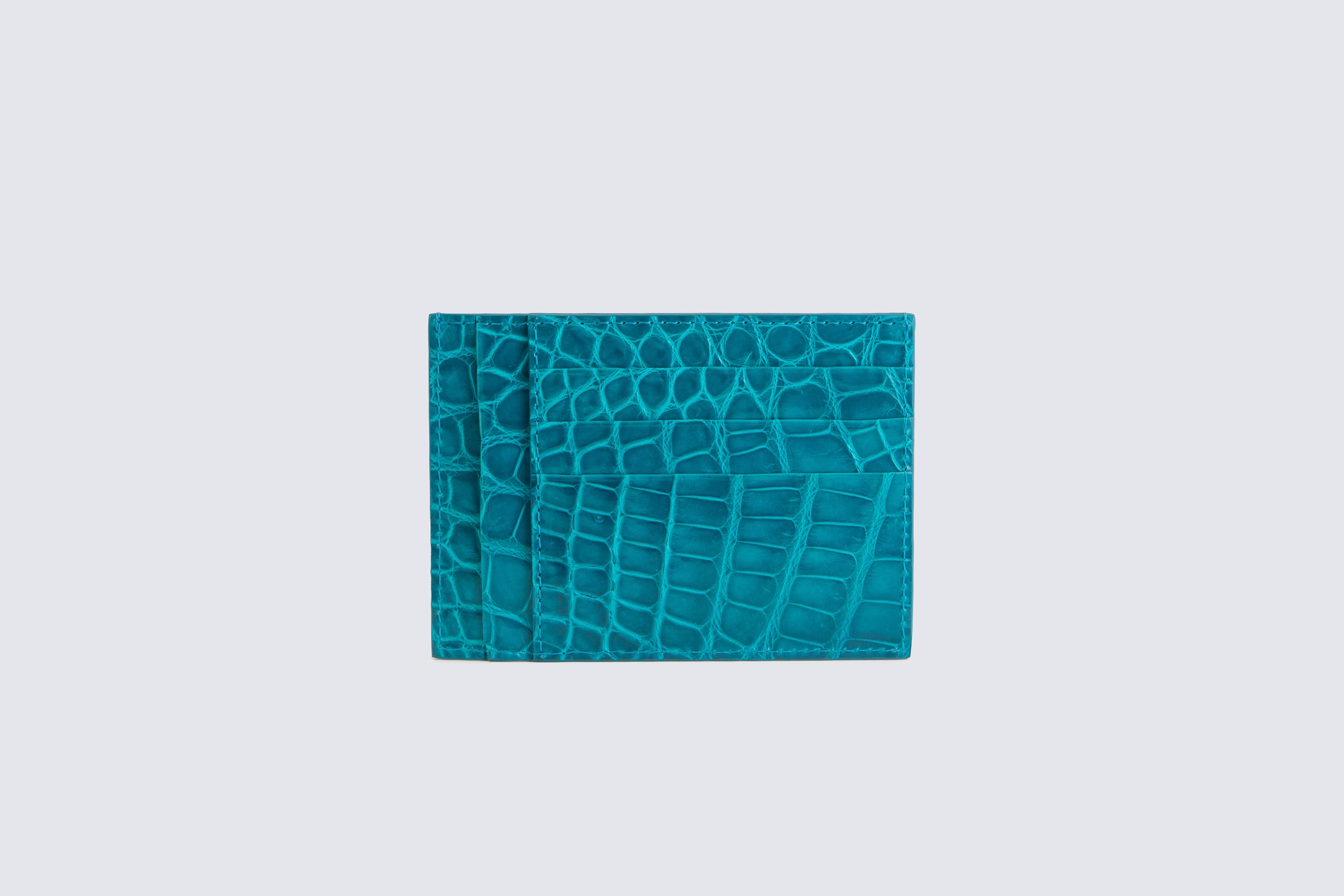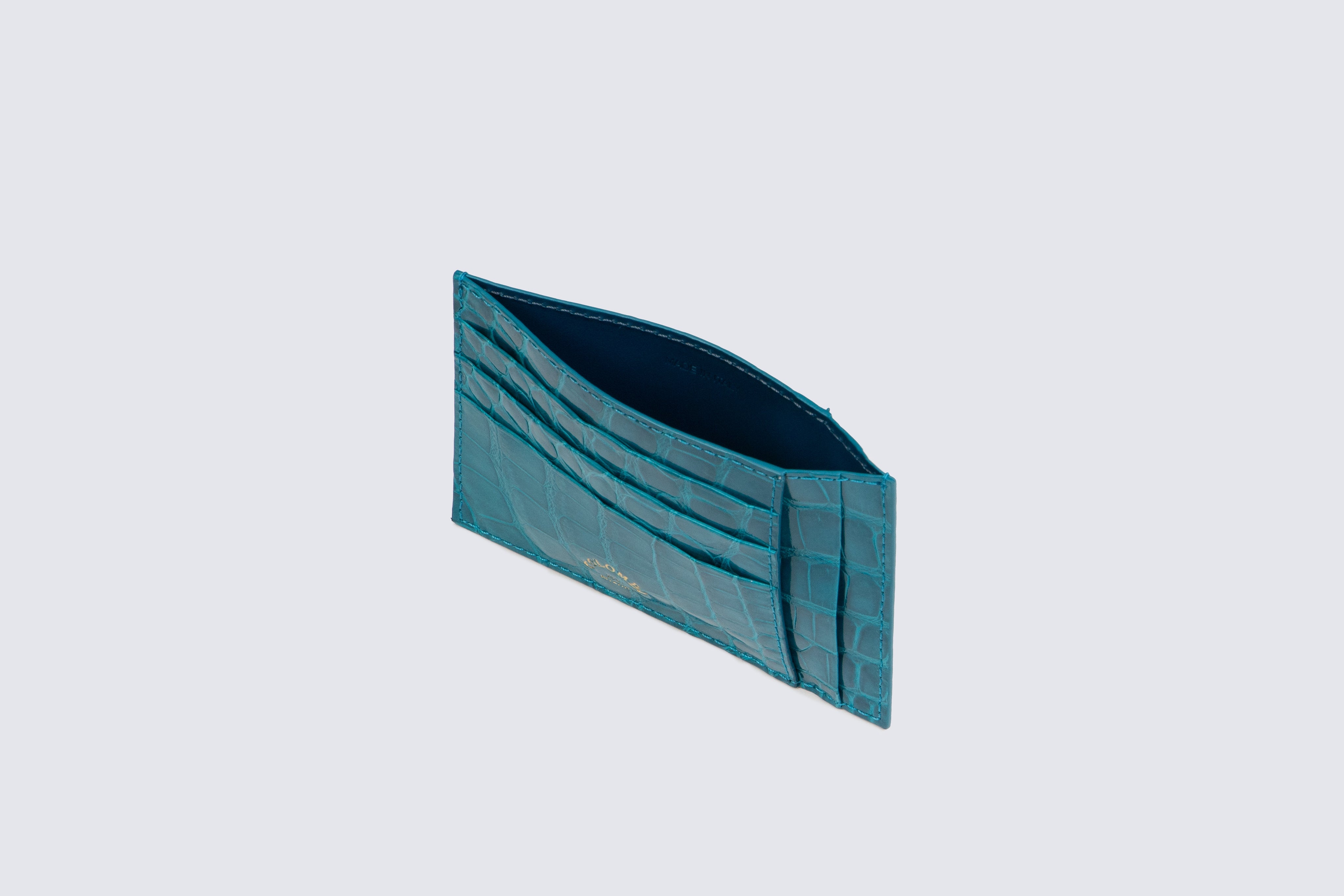 Crocodile leather card holder with ten compartments and a central pocket.