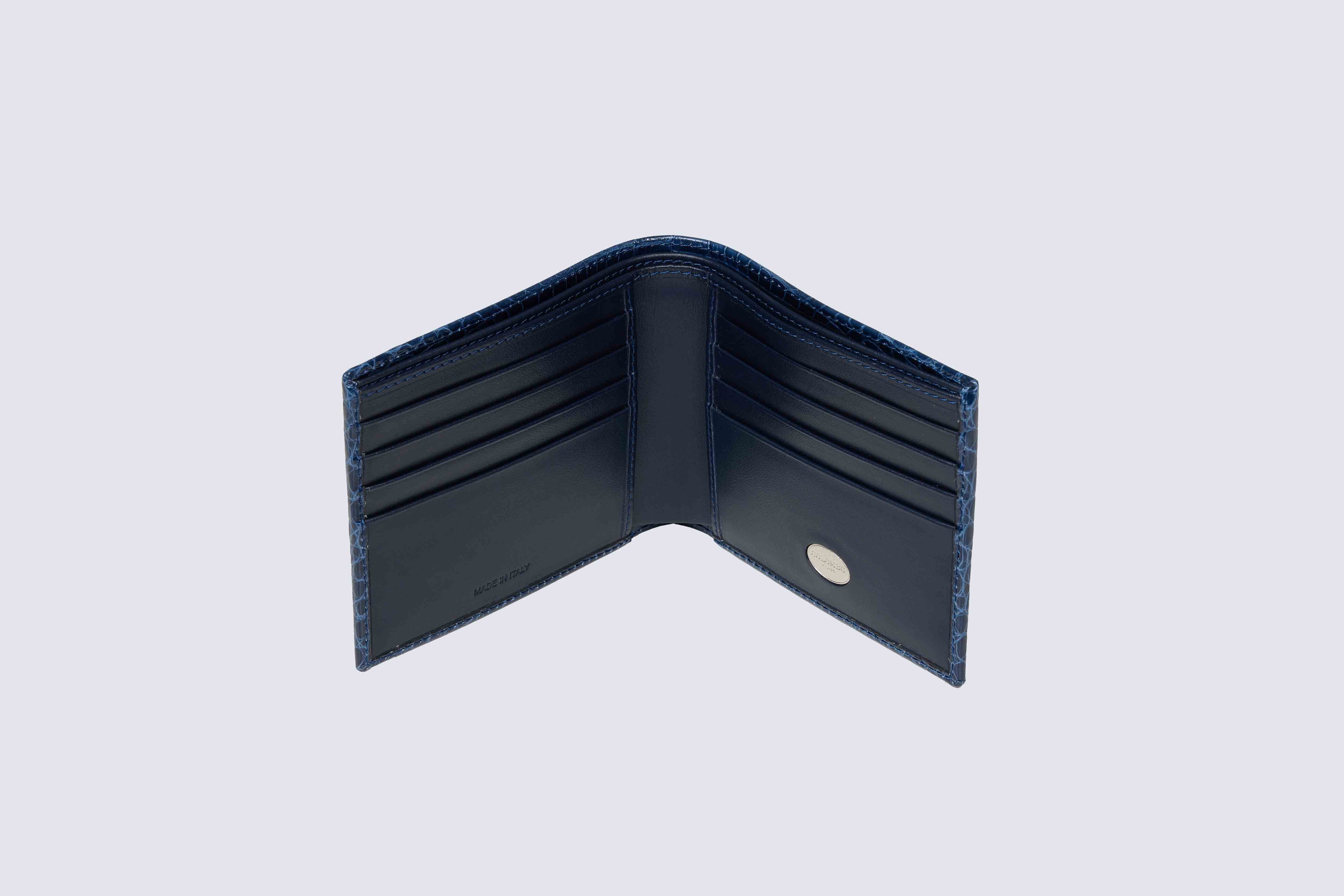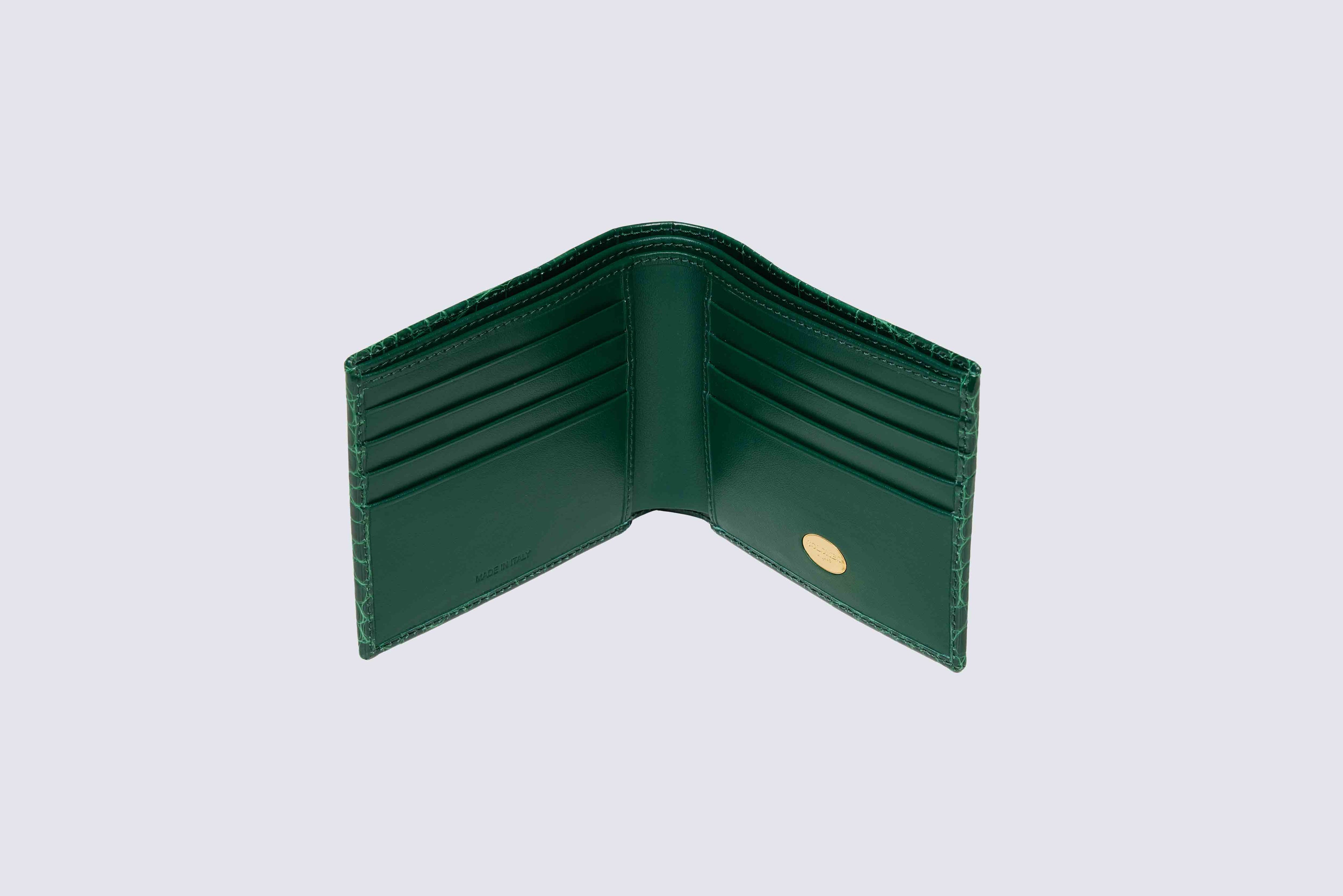 Equipped with spacious card slots and room for banknotes. A compact wallet featuring an elegant metal detail on the inside.