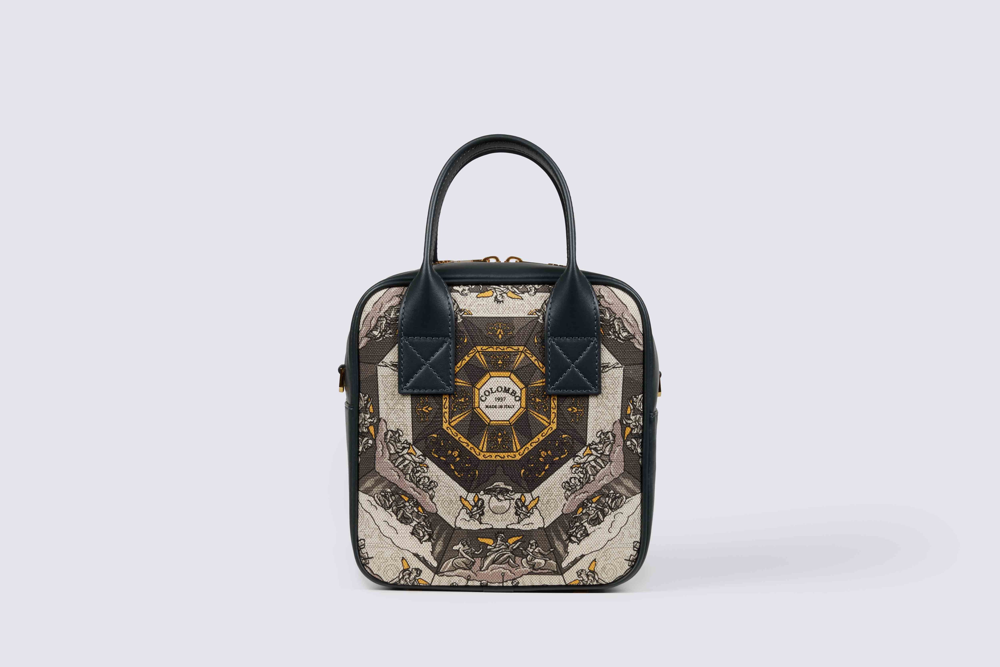 Cupola Cube is a new zippered bag adorned with a captivating graphic design. This unique style stands out with a print inspired by the ceiling frescoes of the dome of the Cathedral of Santa Maria del Fiore in Florence, Italy.