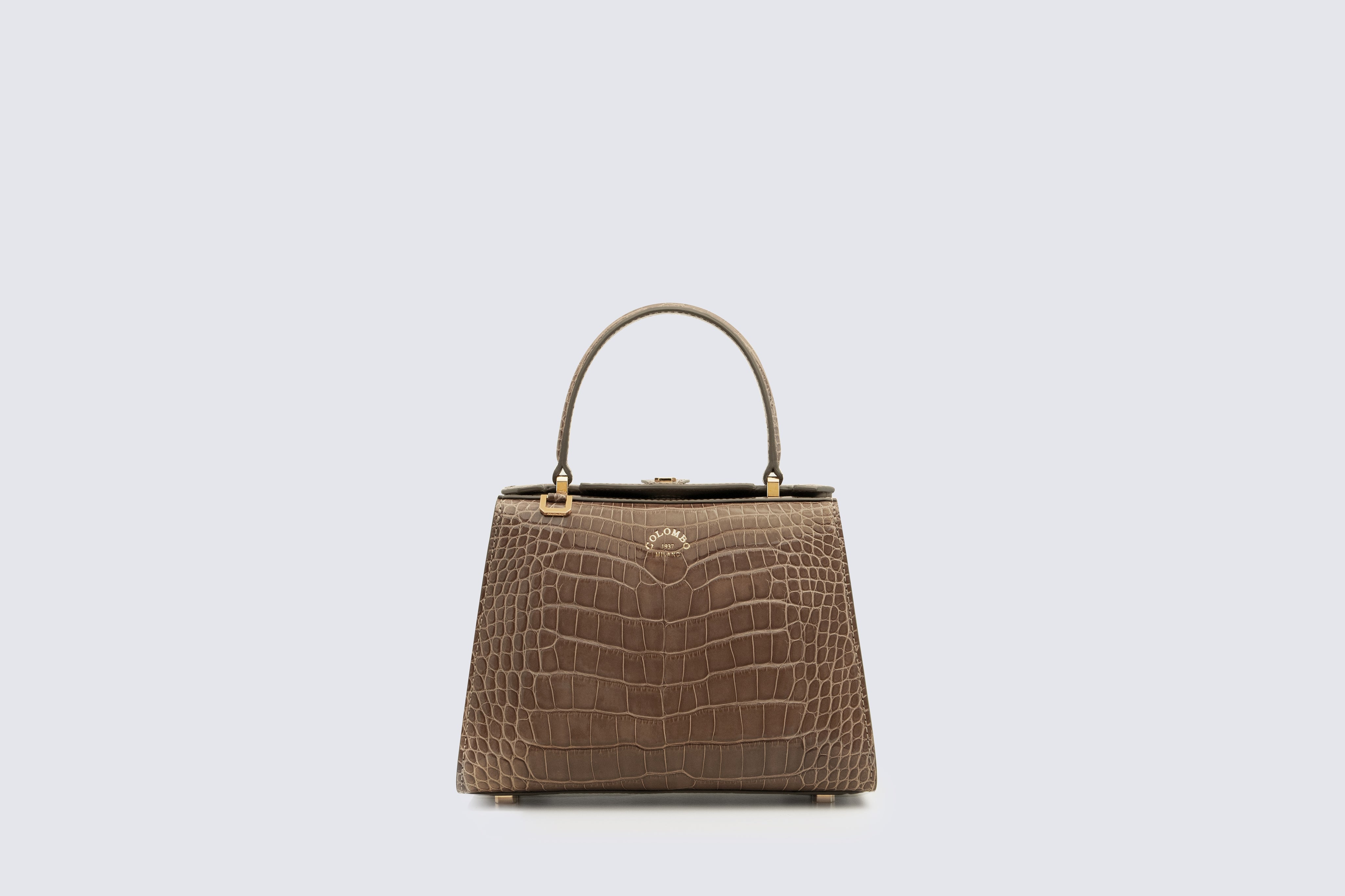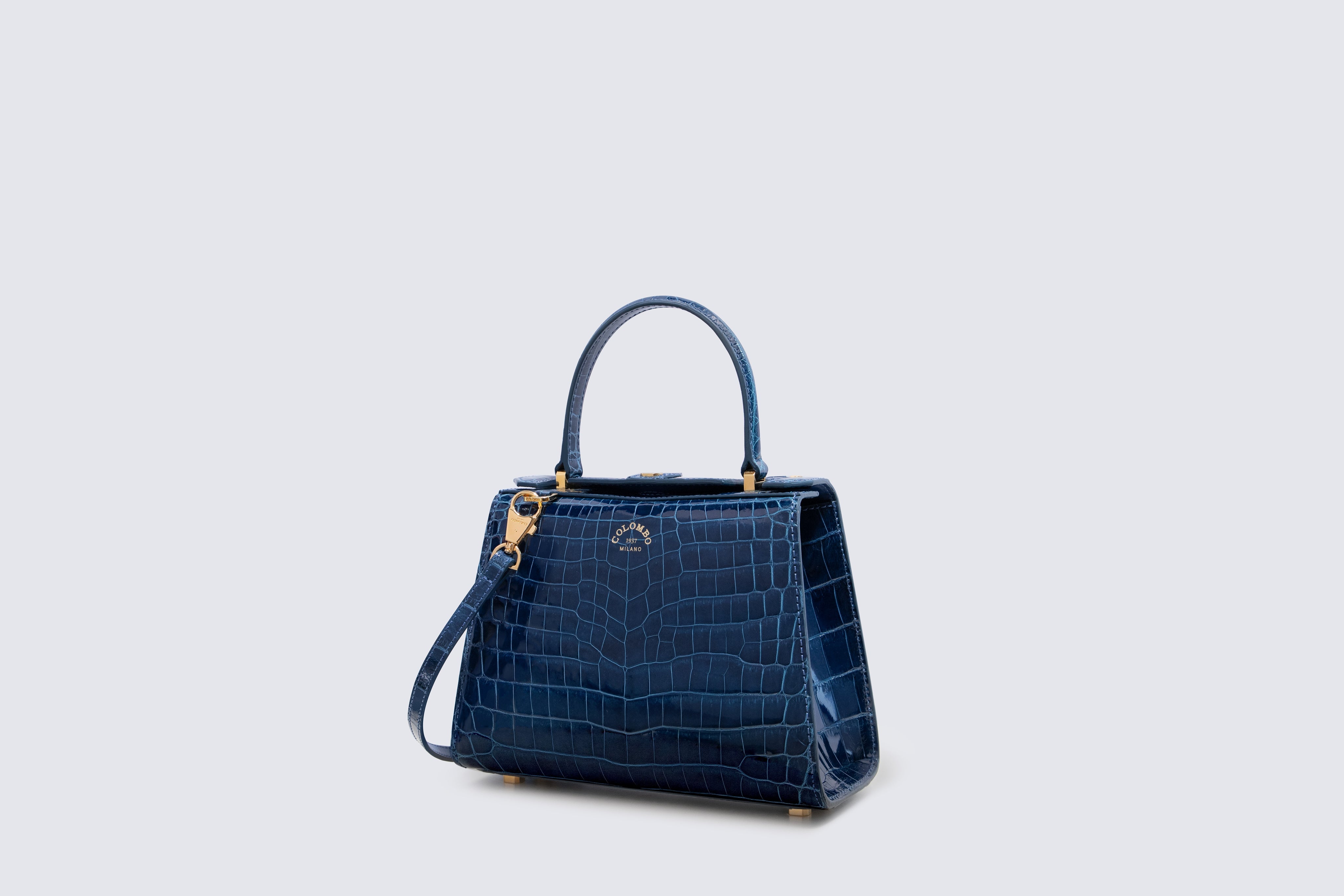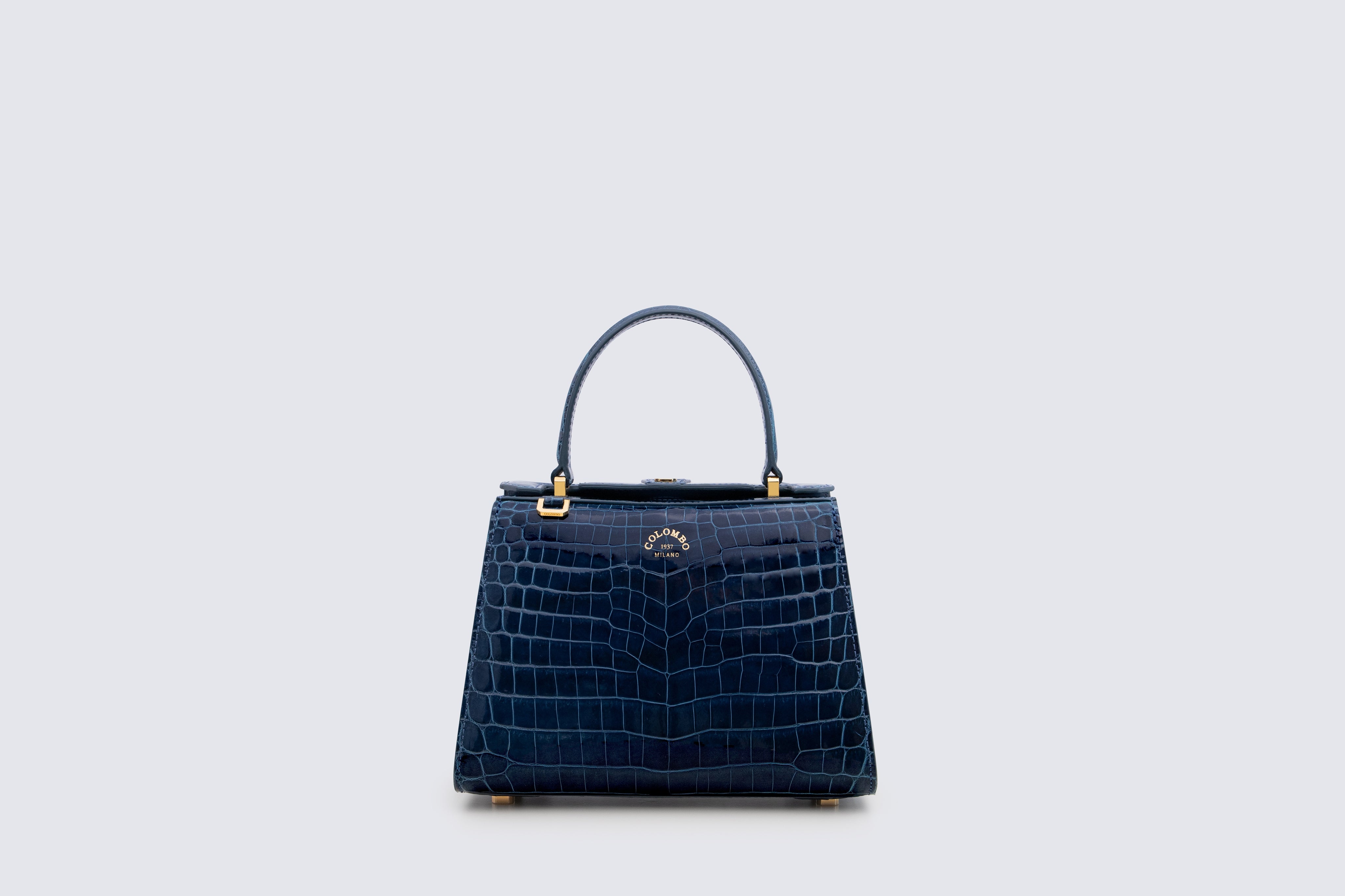 The new dimension of the iconic Dione line, Colombo’s distinctive signature.A crocodile leather bag with a structured shape and a clean design, featuring a practical opening with a concealed magnetic closure. A timeless style, still an undisputed protagonist of today’s contemporary scene.