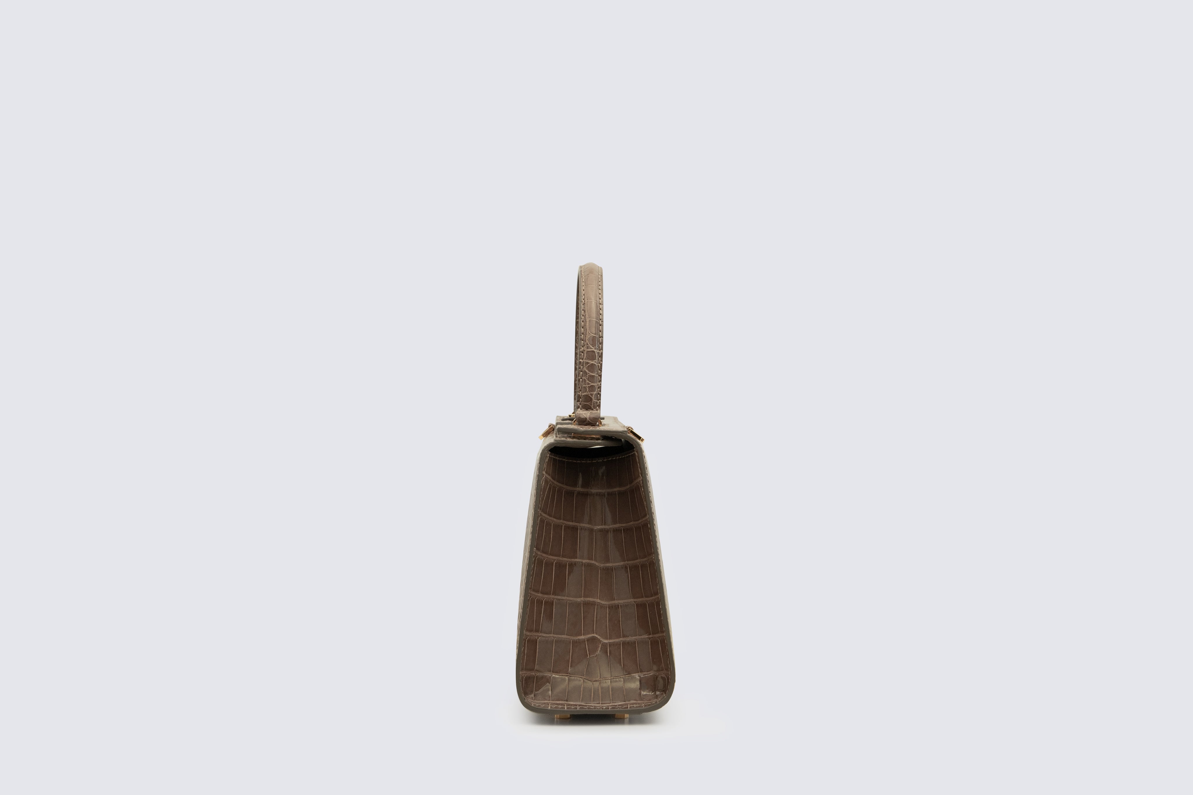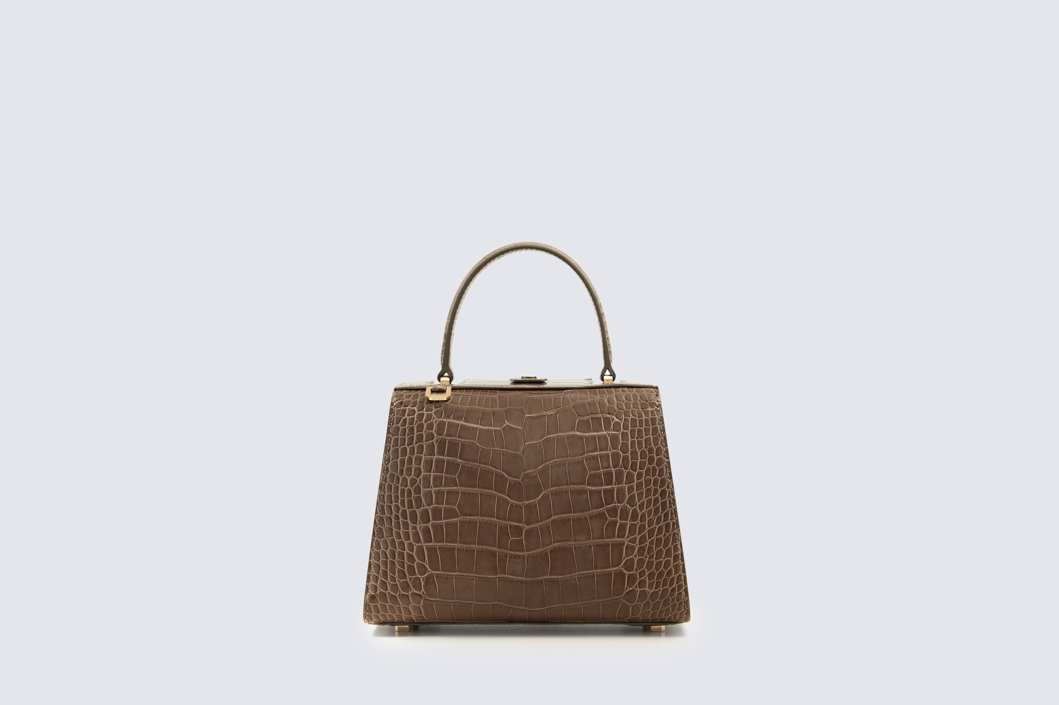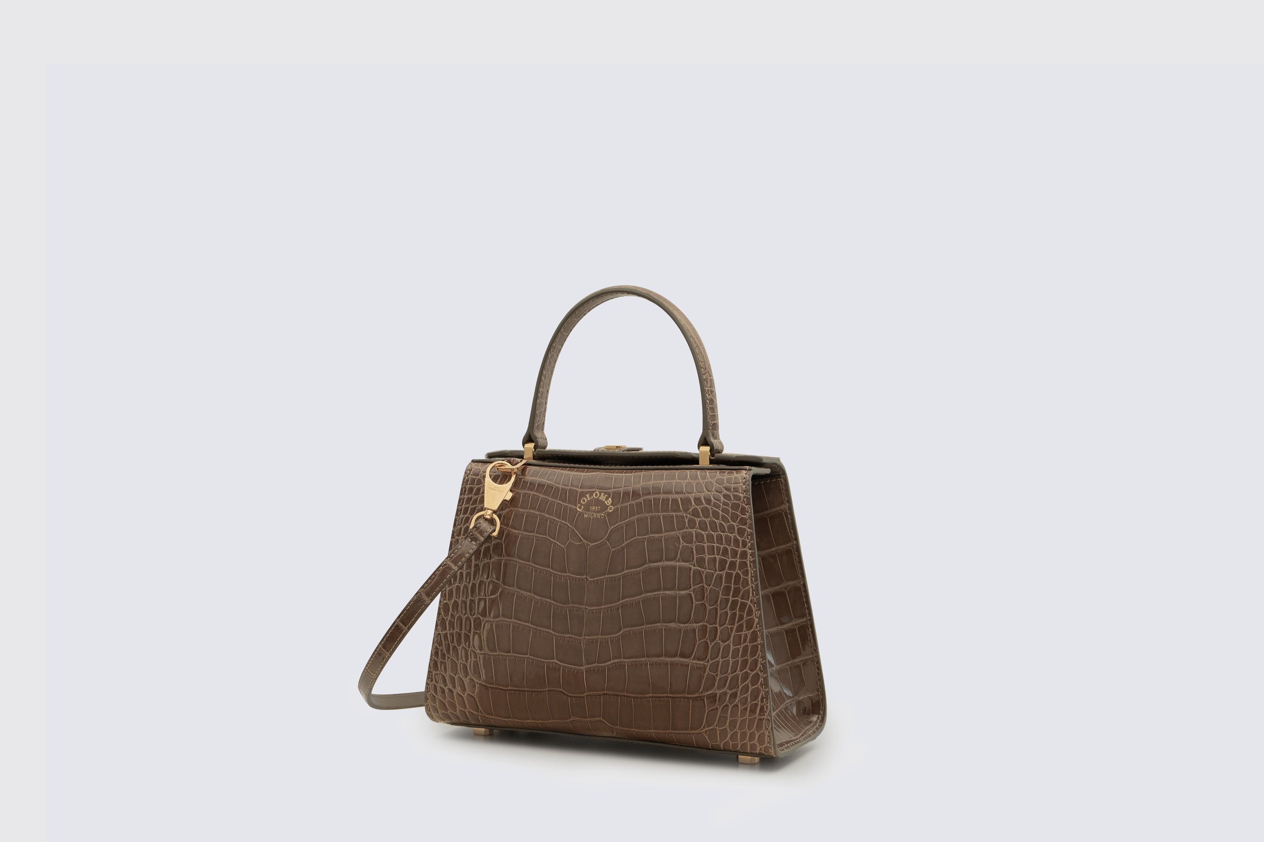 The new dimension of the iconic Dione line, Colombo’s distinctive signature.A crocodile leather bag with a structured shape and a clean design, featuring a practical opening with a concealed magnetic closure. A timeless style, still an undisputed protagonist of today’s contemporary scene.