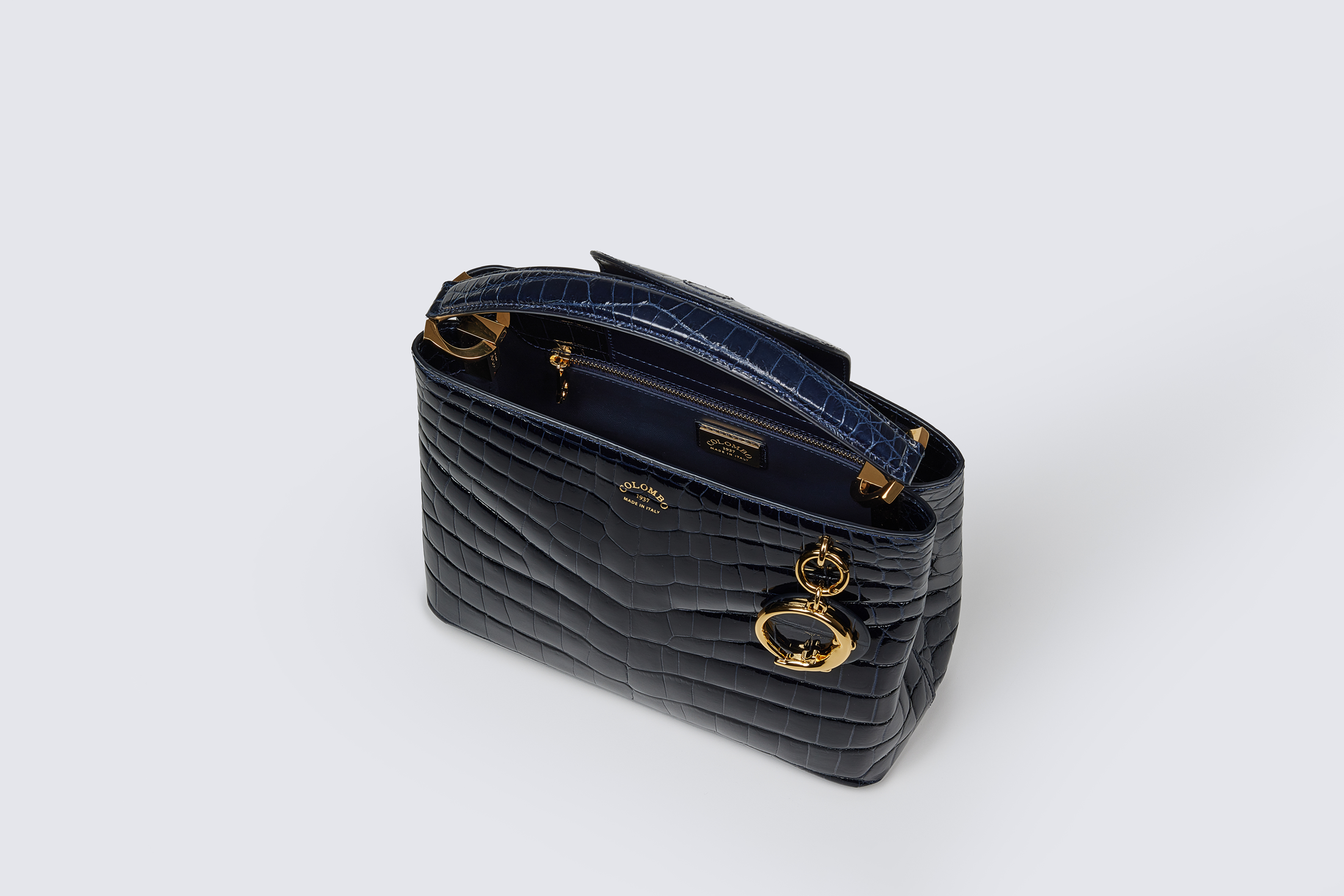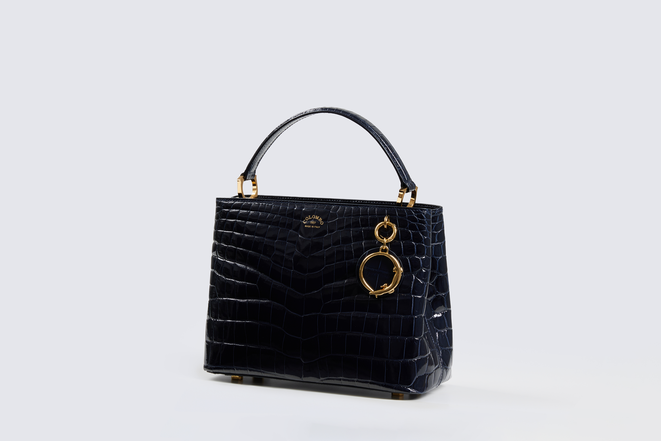 A classic-shaped tote bag adorned with a crocodile charm, Hera effortlessly embodies the essence of Colombo's identity, exuding sophistication and timeless elegance.