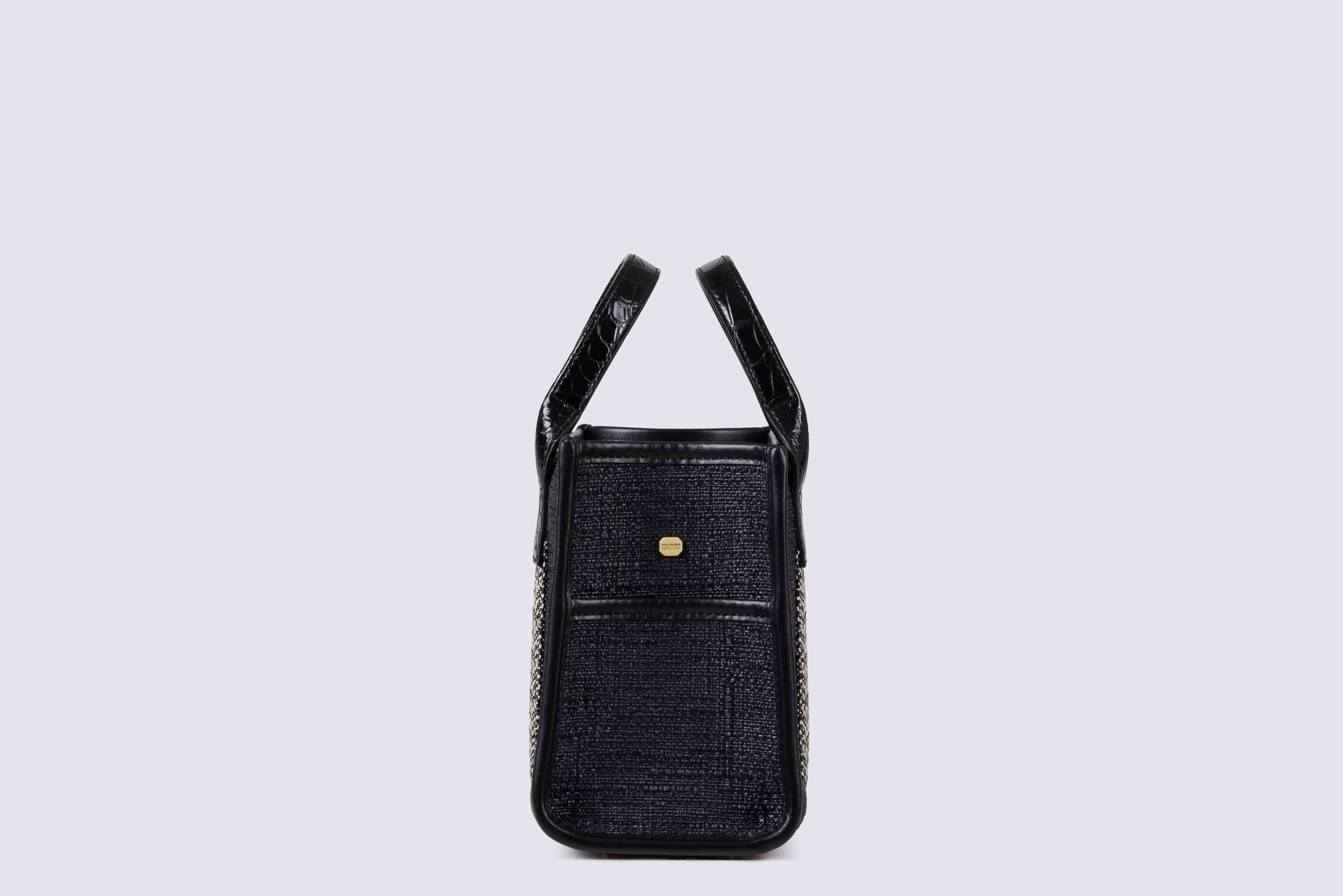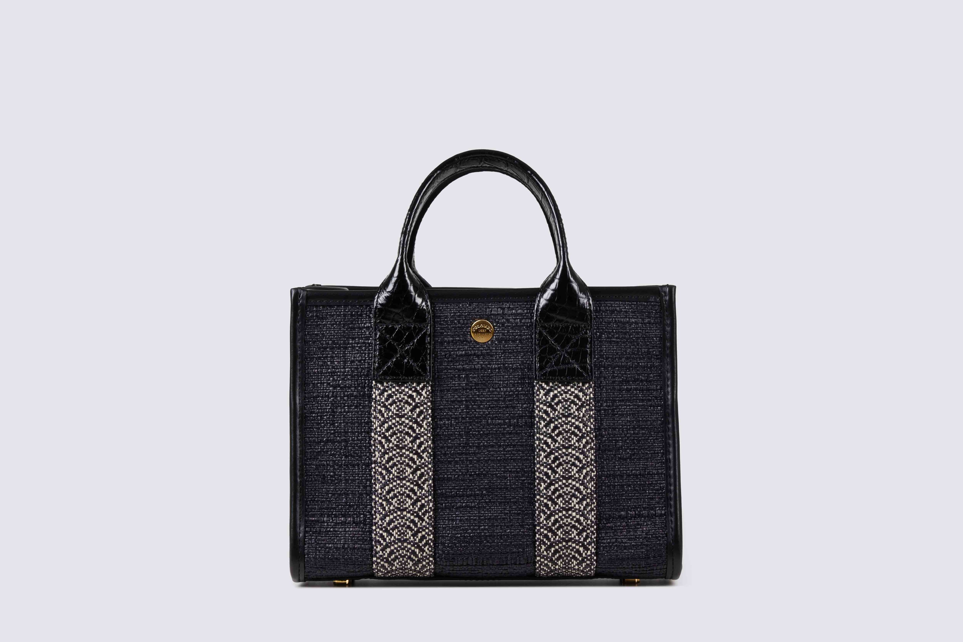 RAPSODIA showcases traditional weaving techniques by Italian artisans using eco-friendly materials. The pattern's shape is inspired by a rainbow-like mosaic design found in the noble Villa Olmo in Como, northern Italy.